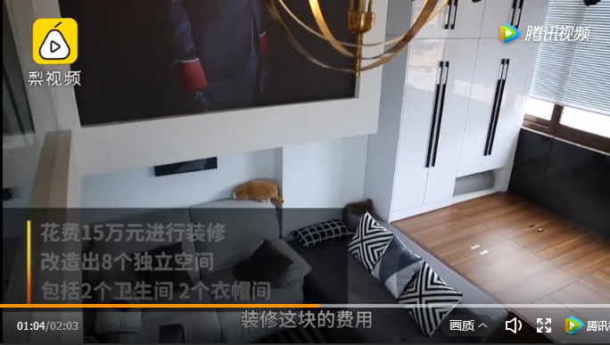 然而,只用了15萬、耗時2個月,忻馨把這套蝸居改造成了雙層Loft“豪宅”,還“變”出了8個獨立功能的房間。