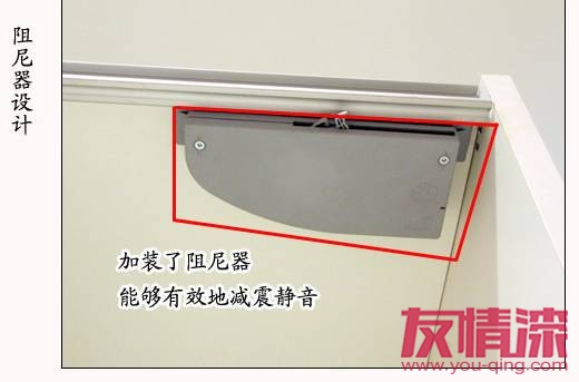 衣柜:安裝阻尼器的衣柜門,只需要輕輕帶過門板,門板即會向力的方向滑動,直至最后一小段距離減速到完全閉合,不會留下縫隙。