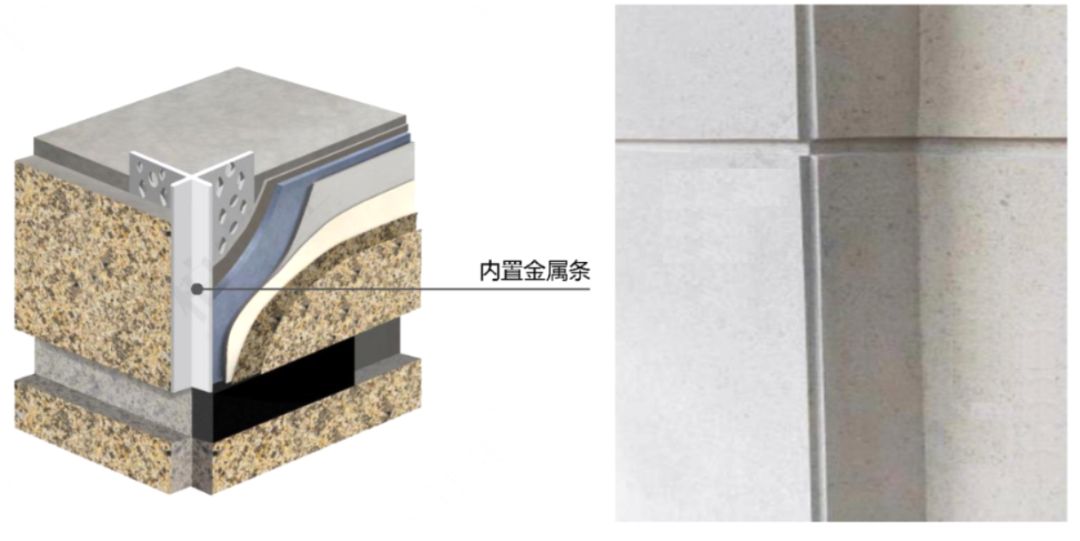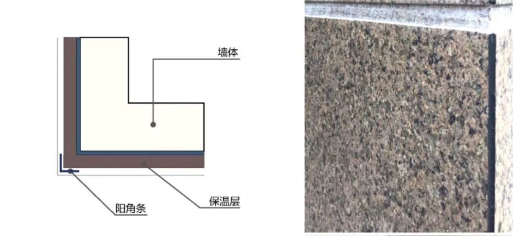 在保溫層外貼陽角,保證后期涂料施工的筆直度